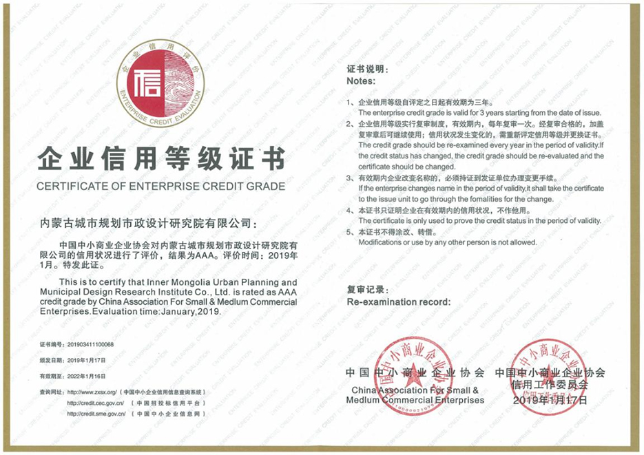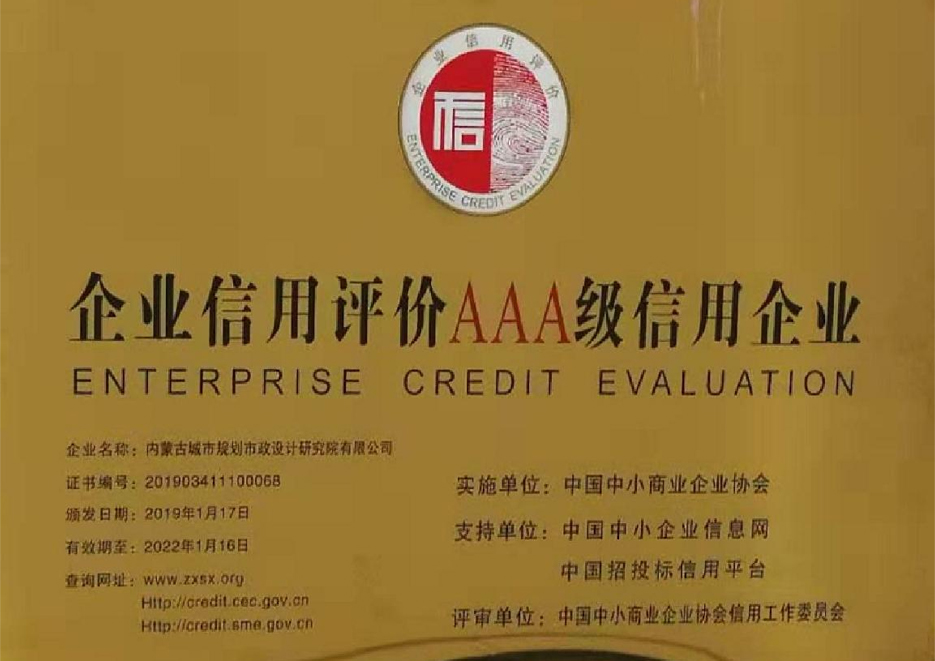 ? _我院通過(guò)AAA級信用企業(yè)等級認證 - 院內動(dòng)態(tài) - 內蒙古城市規劃市政設計研究院