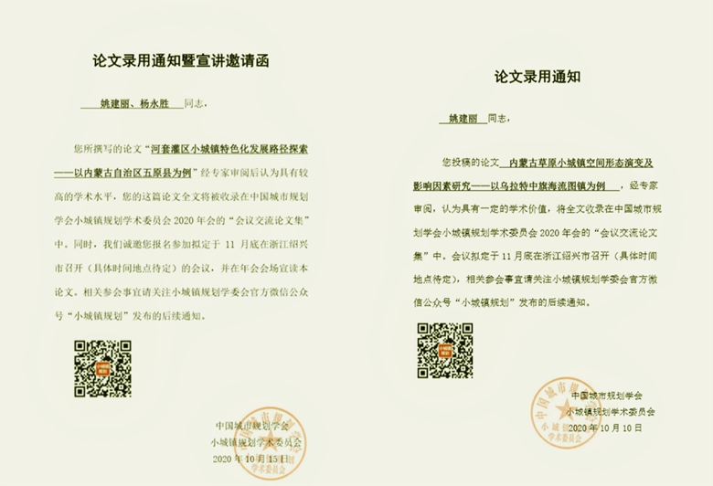 近日,經(jīng)中國城市規劃學(xué)會(huì )、小城鎮規劃學(xué)術(shù)委員會(huì )評審,我院選送的論文《河套灌區小城鎮特色化發(fā)展路徑探索——以?xún)让晒抛灾螀^五原縣為例》(作者:姚建麗 楊永勝)和《內蒙古草原小城鎮空間形態(tài)演變及影響因素研究——以烏拉特中旗海流圖鎮為例》(作者:姚建麗)全文收錄《小城鎮規劃學(xué)術(shù)委員會(huì ) 2020 年會(huì )會(huì )議交流論文集》,其中第一篇論文將在今年11月召開(kāi)的小城鎮規劃年會(huì )宣讀。