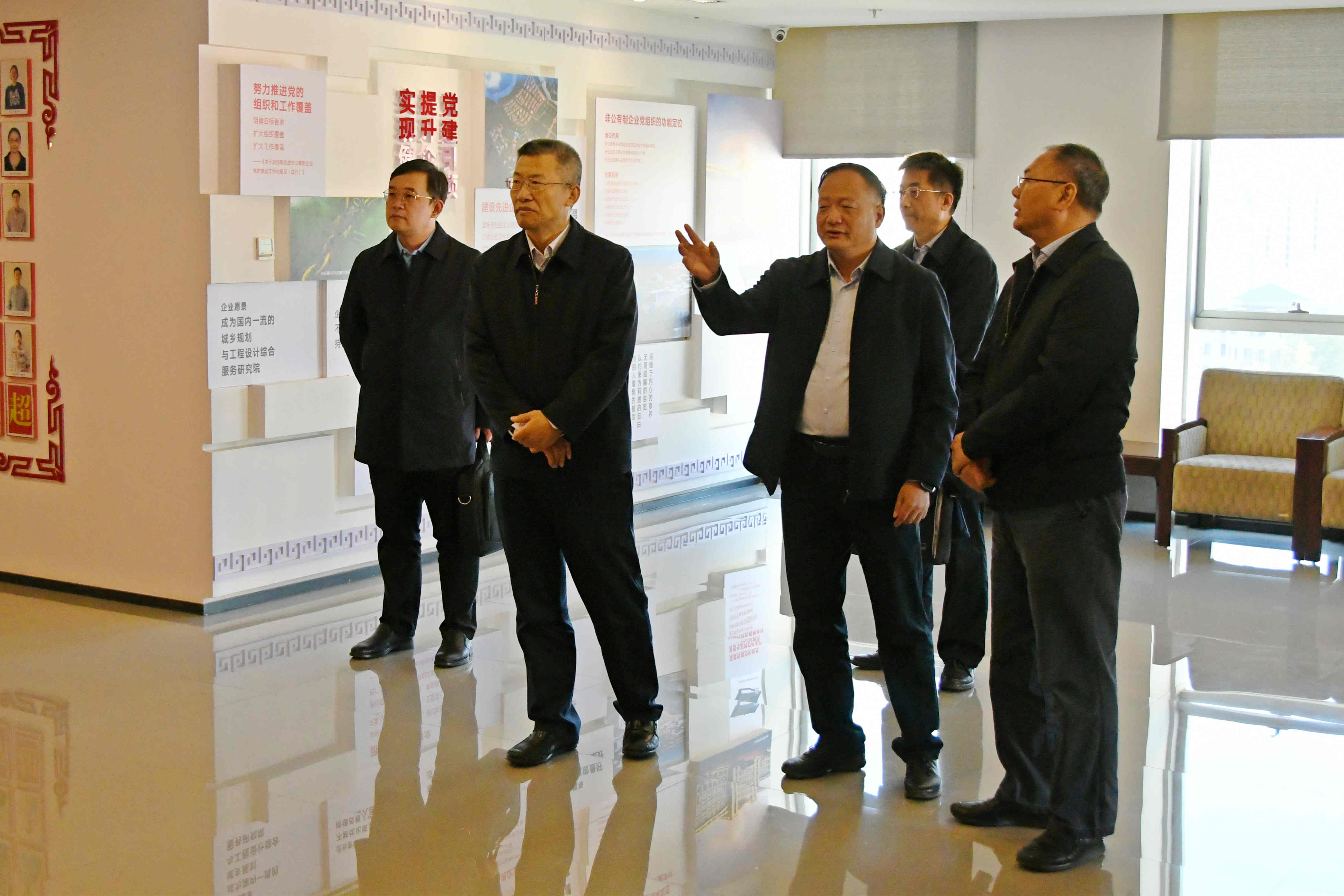 會(huì )后,逄宗展副院長(cháng)一行在楊永勝董事長(cháng)及相關(guān)人員陪同下參觀(guān)了我院黨建文化陣地,對我院黨建工作給予充分肯定和高度評價(jià)。