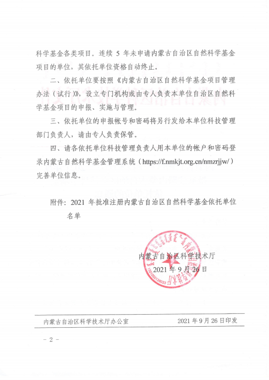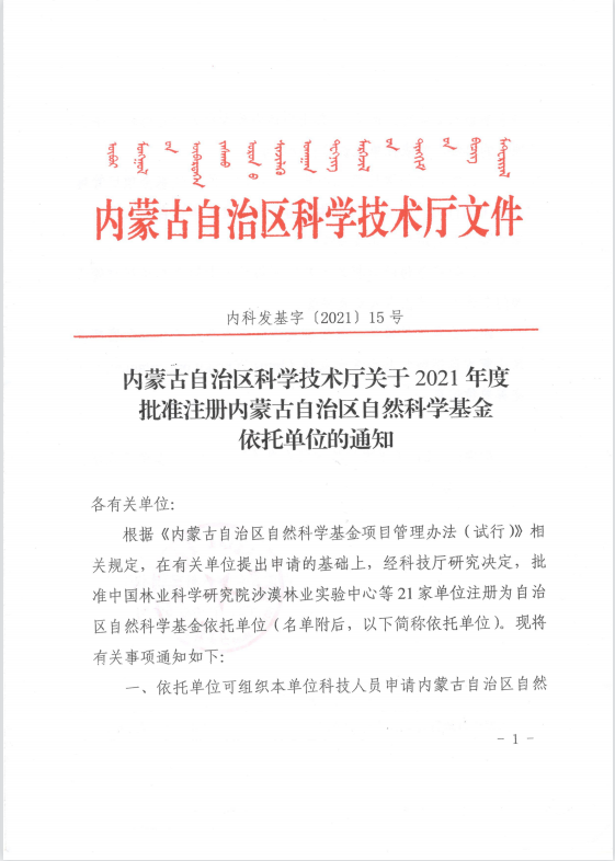 近日,內蒙古自治區科學(xué)技術(shù)廳發(fā)布了《關(guān)于2021年度批準注冊?xún)让晒抛灾螀^自然科學(xué)基金依托單位的通知》,我院首次被批準成為內蒙古自治區自然科學(xué)基金依托單位,標志著(zhù)我院具備了獨自申請和承擔自治區自然科學(xué)基金項目的資格。